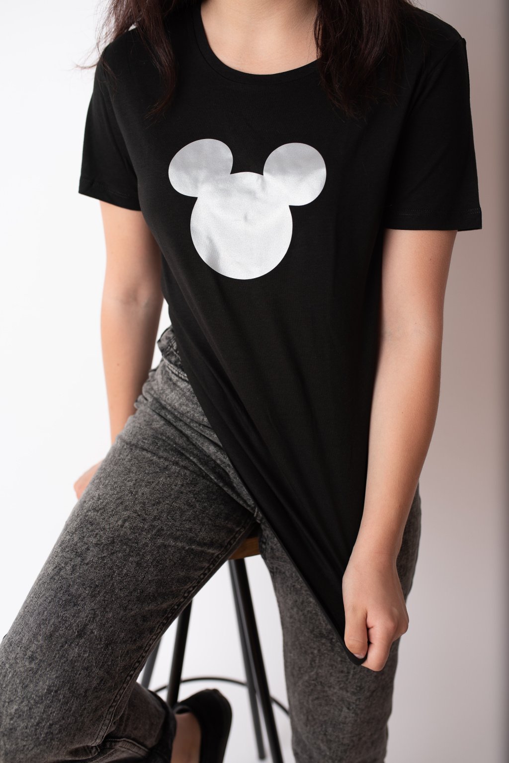 Dámské černé triko s krátkým rukávem.
